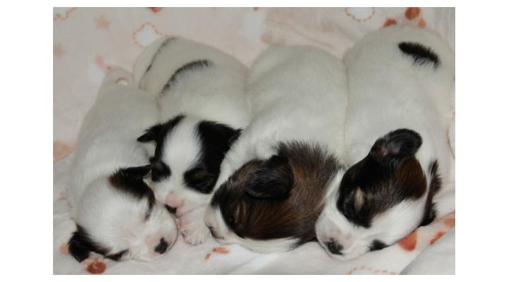 родились четыре щенка - два мальчика и две девочки